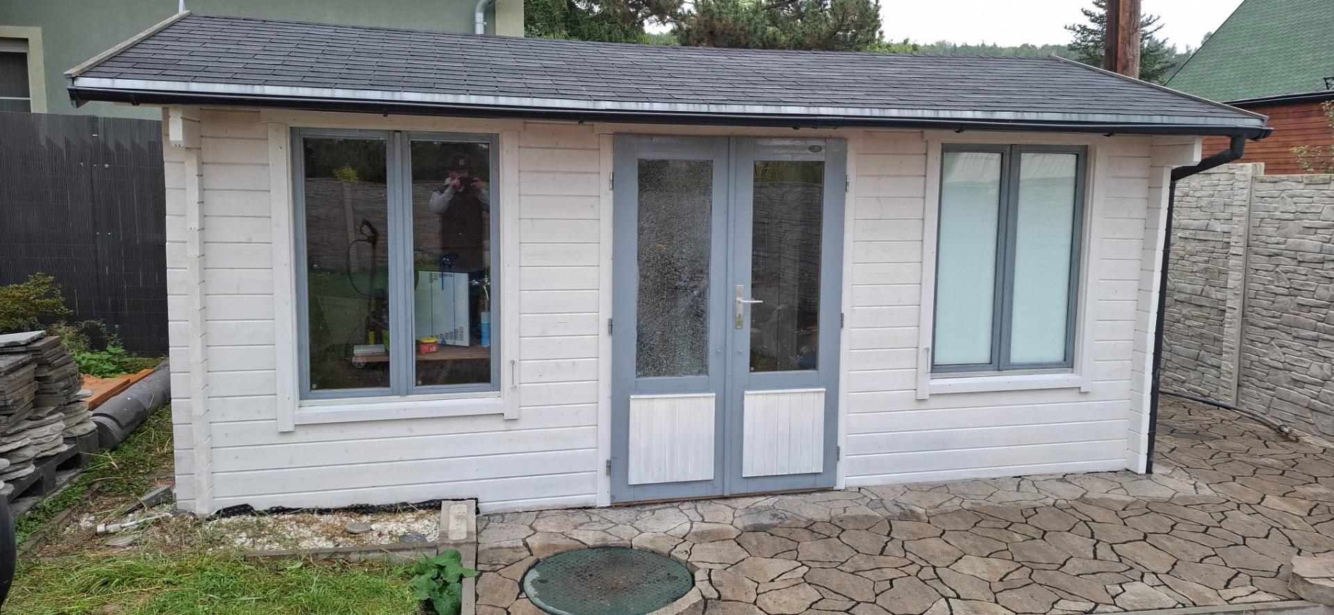 Zahradní domek a dlažba